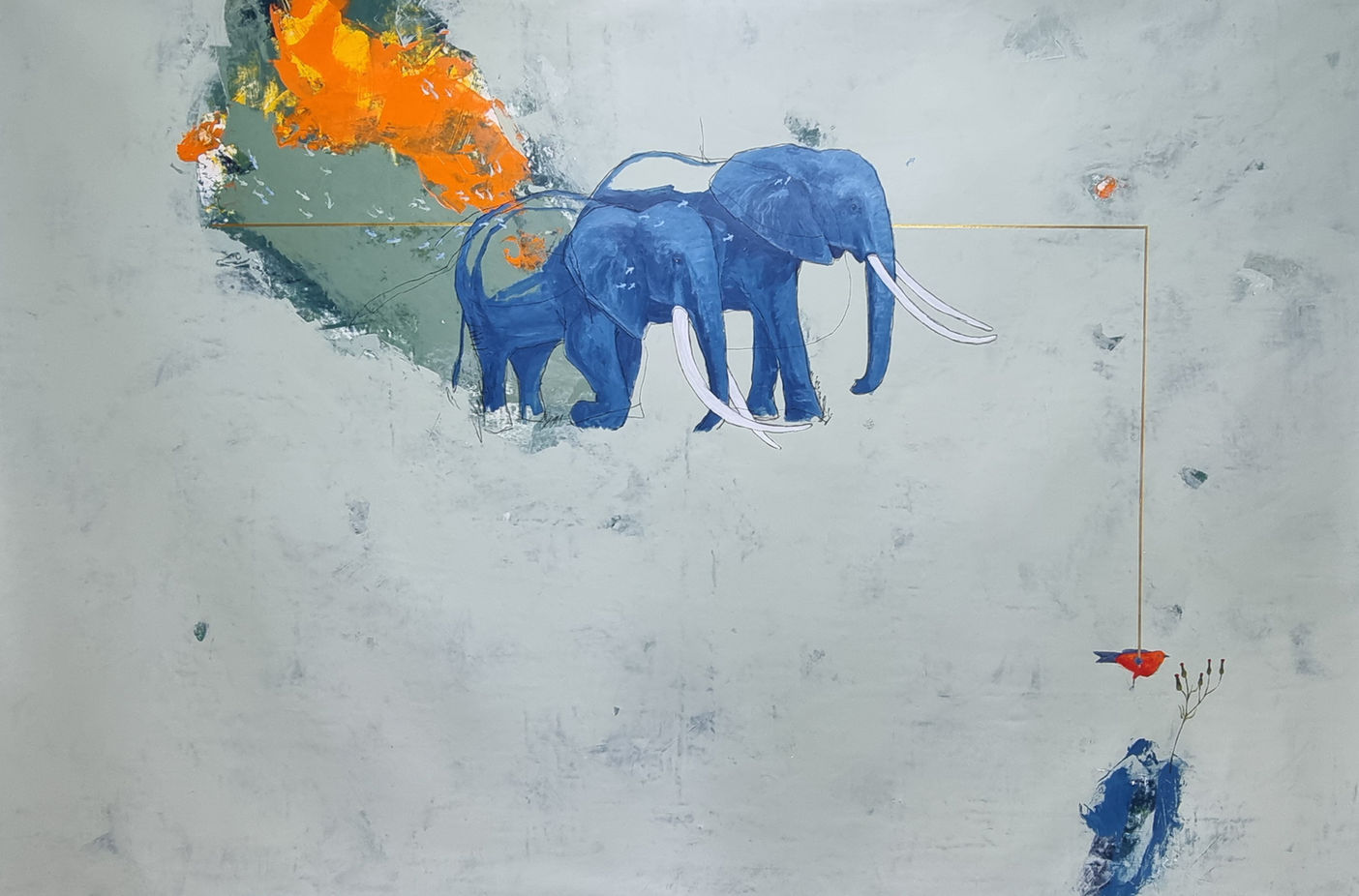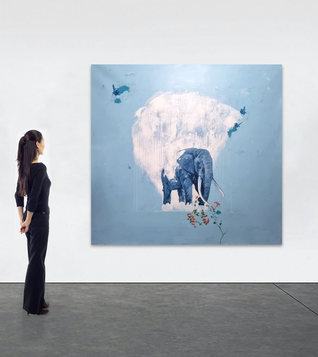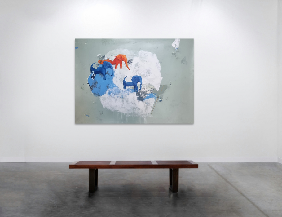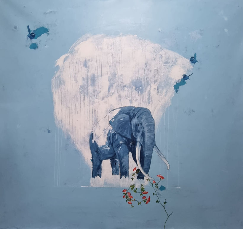 Con una rica gama de colores y texturas, Boris resalta la importancia de la familia para los elefantes que pasean en manadas y por sí solos, siempre regresando el mismo día para estar con los suyos.